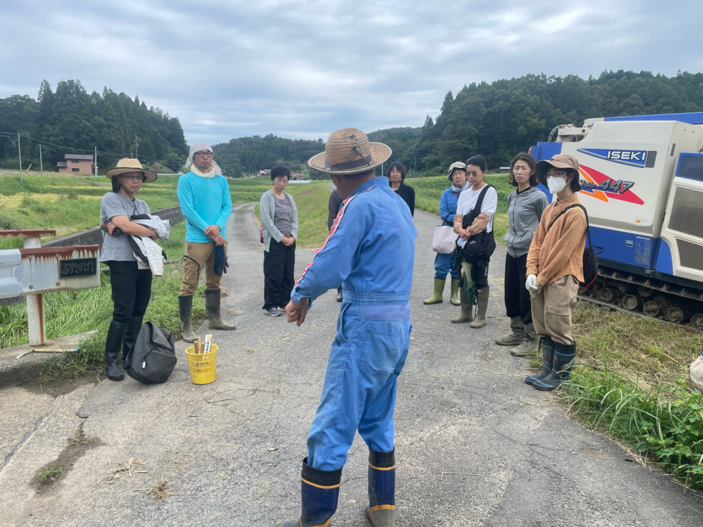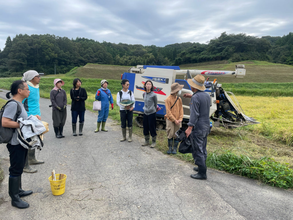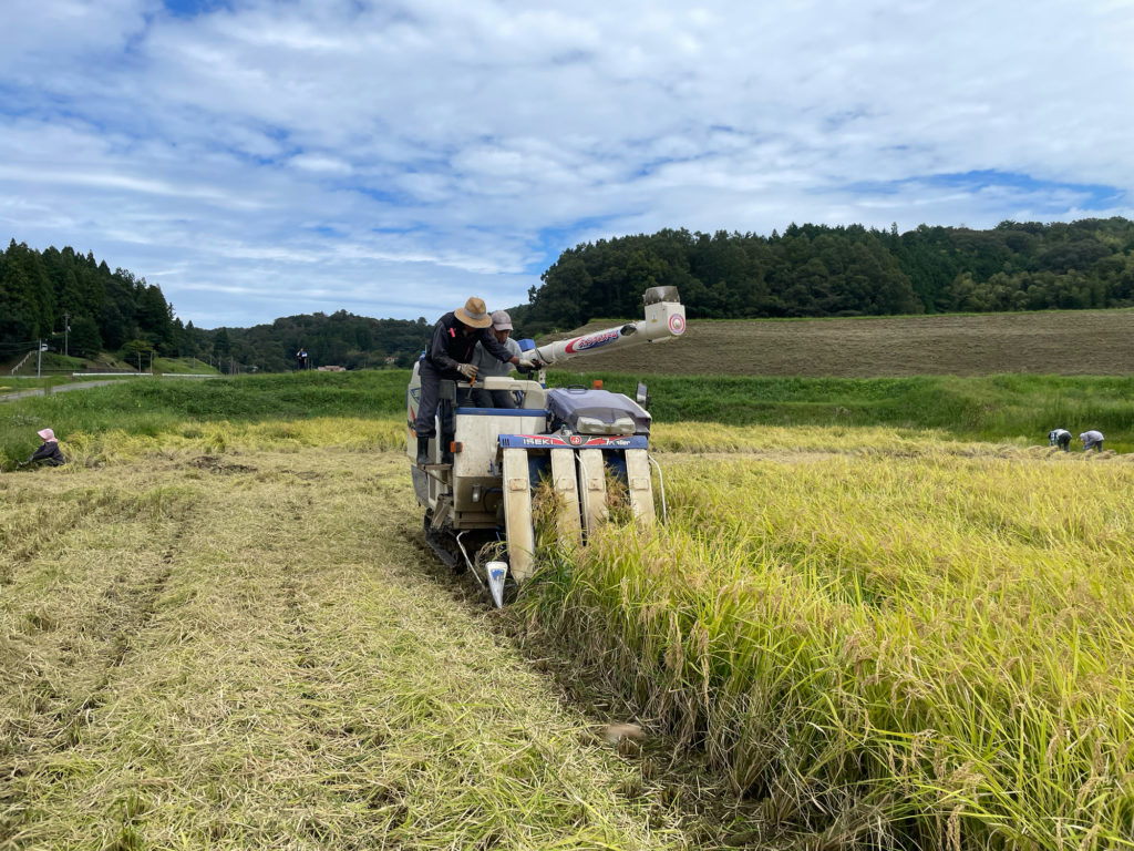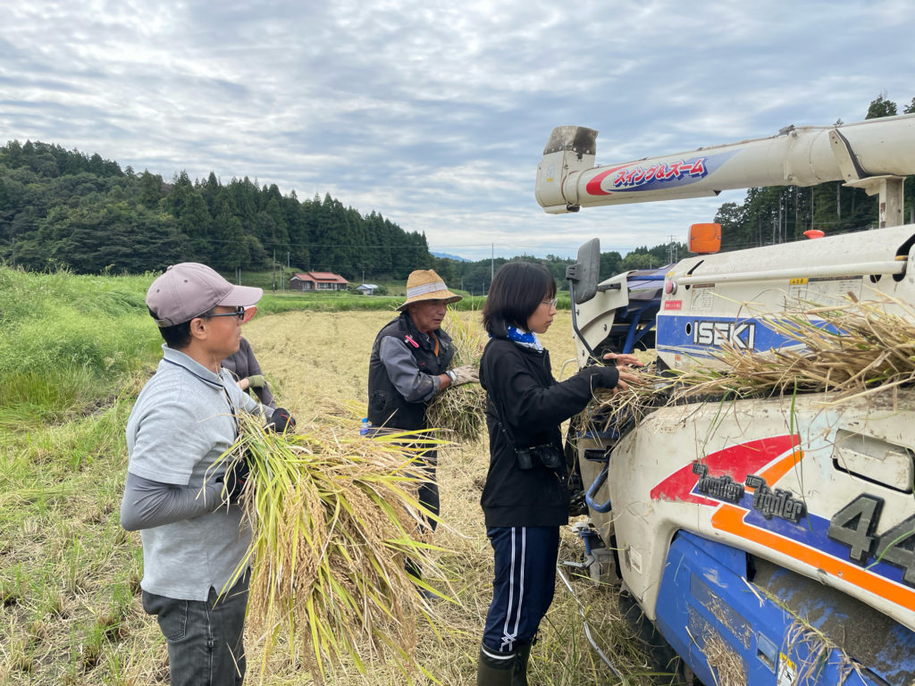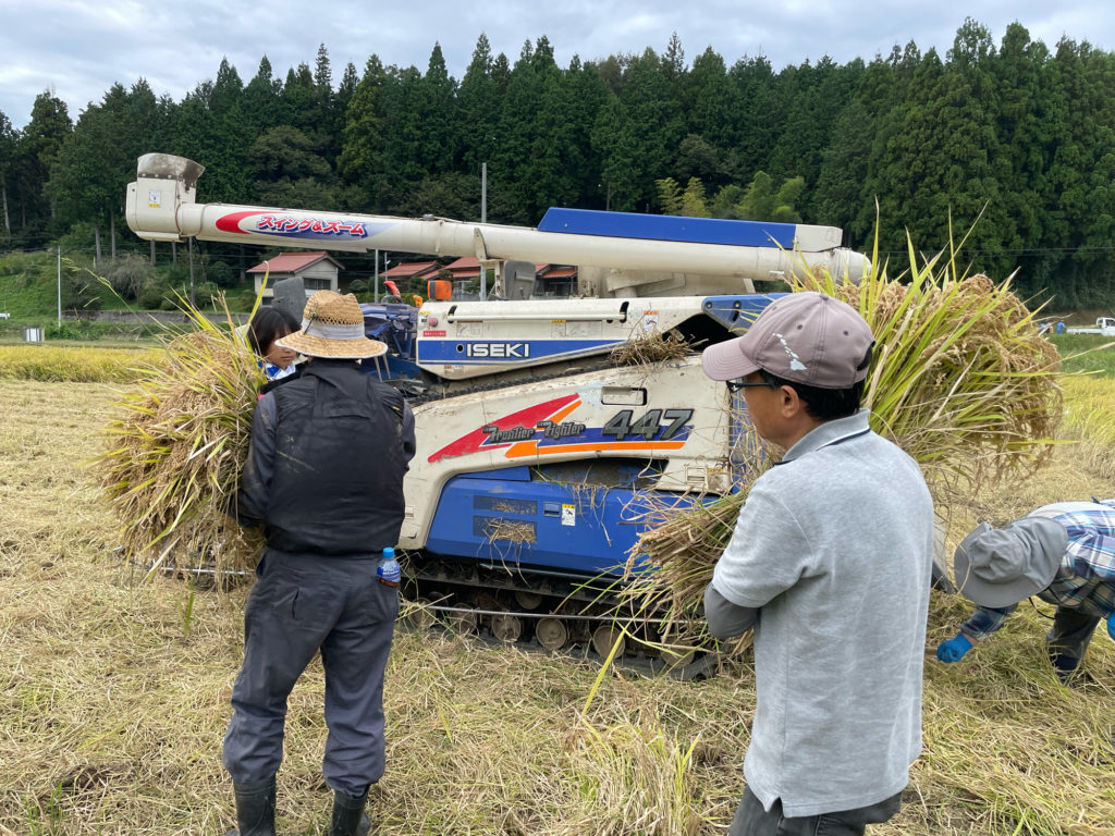 そのあとはみんなで脱穀。コンバインに稲を入れました。