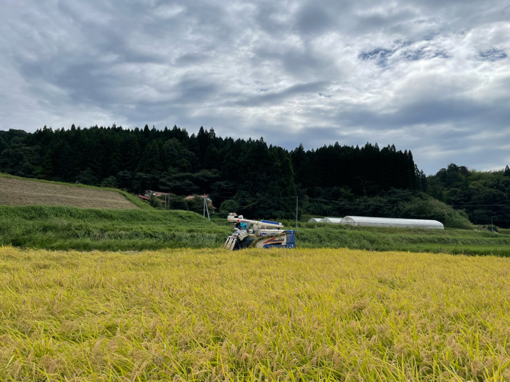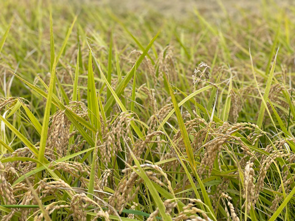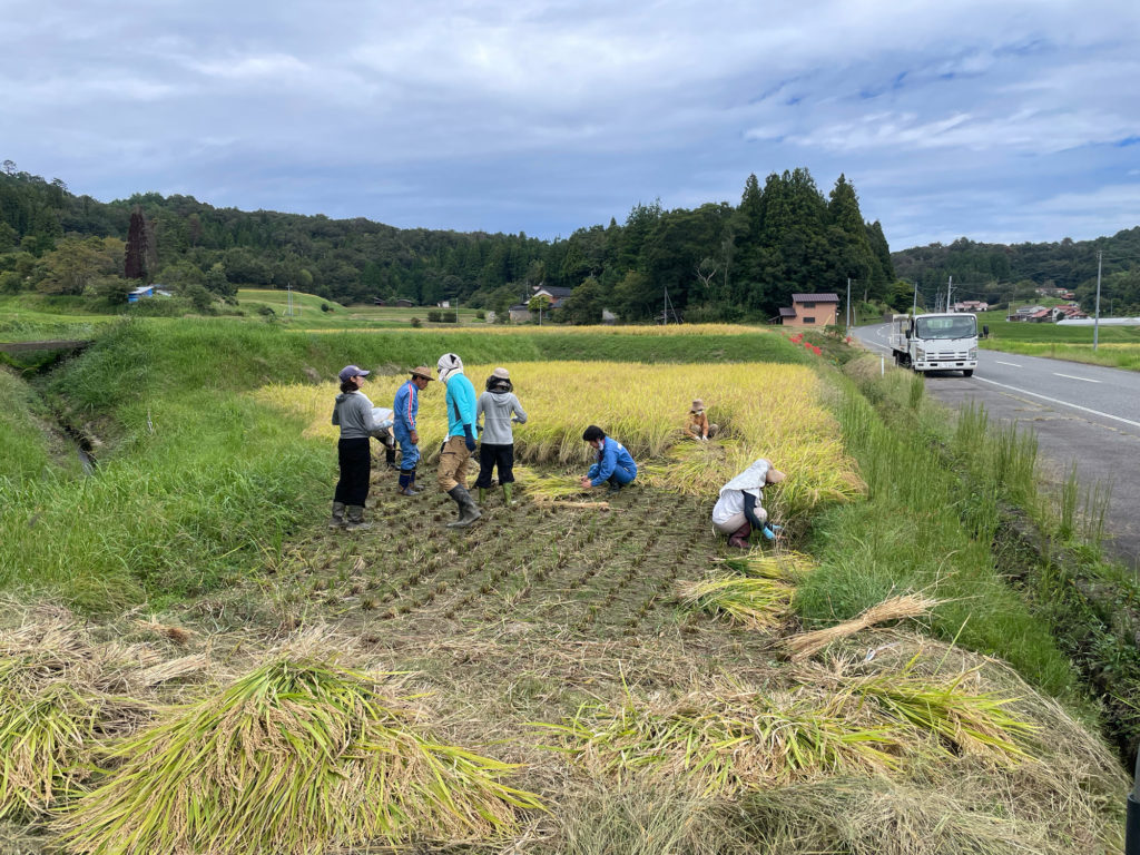 青天ではなかったものの、雨が降るわけでもない、とってもちょうどいい天候のもと、稲刈りができました。(5月に植えた稲は、しっかり実っていました!)